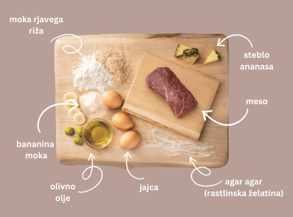 – Monoproteinsko meso; humana reja, sveža mišičnina, pašna govedina, perutnina iz proste reje, prosto ulovljene ribe ali praženega arašidovega masla